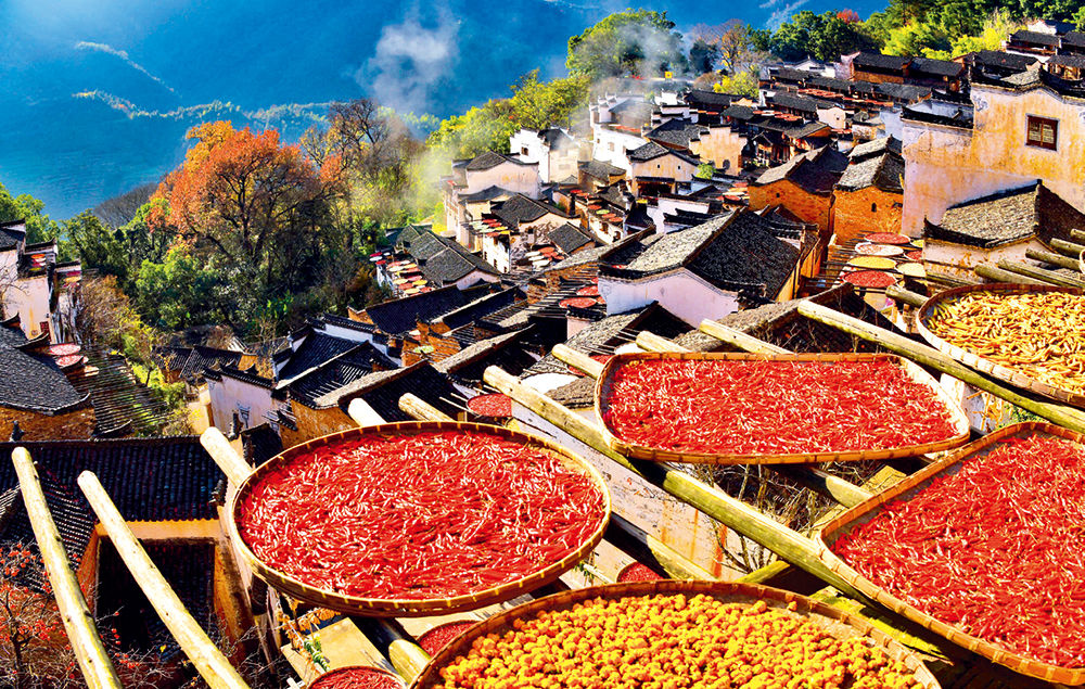 江西省婺源縣篁嶺村晾曬收獲的農(nóng)產(chǎn)品(20161216日攝) 曹加祥攝