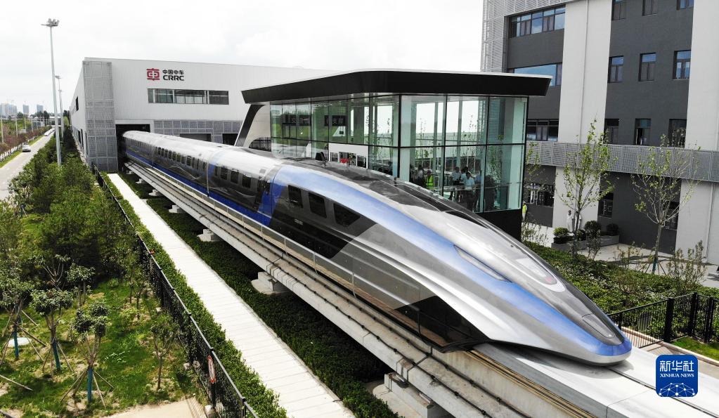 這是在山東青島拍攝的時(shí)速600公里高速磁浮交通系統(tǒng)(無(wú)人機(jī)照片,2021年7月20日攝)。新華社記者 李紫恒 攝