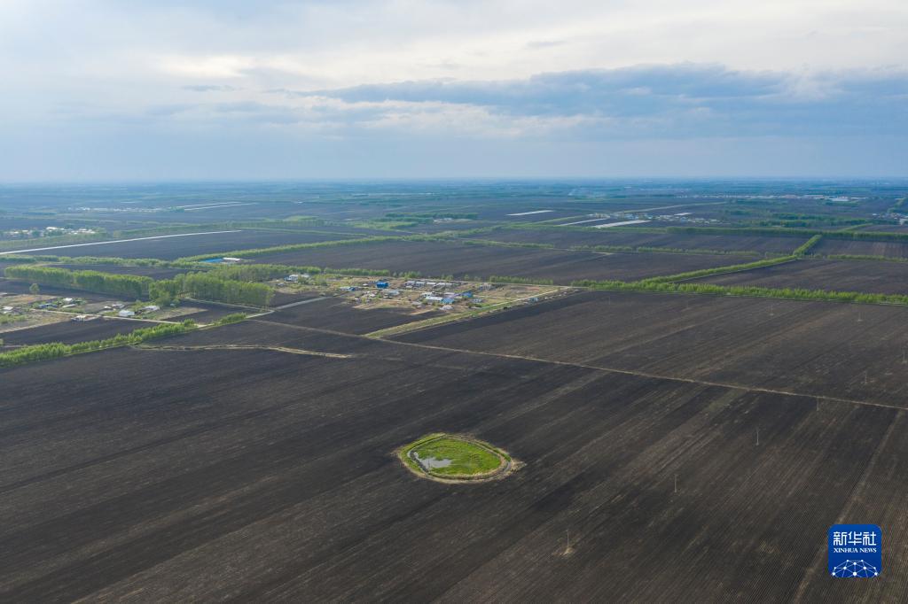 這是黑龍江省海倫市前進(jìn)鎮(zhèn)光榮村已完成播種的黑土耕地(無(wú)人機(jī)照片,2022年5月23日攝)。新華社記者 謝劍飛 攝
