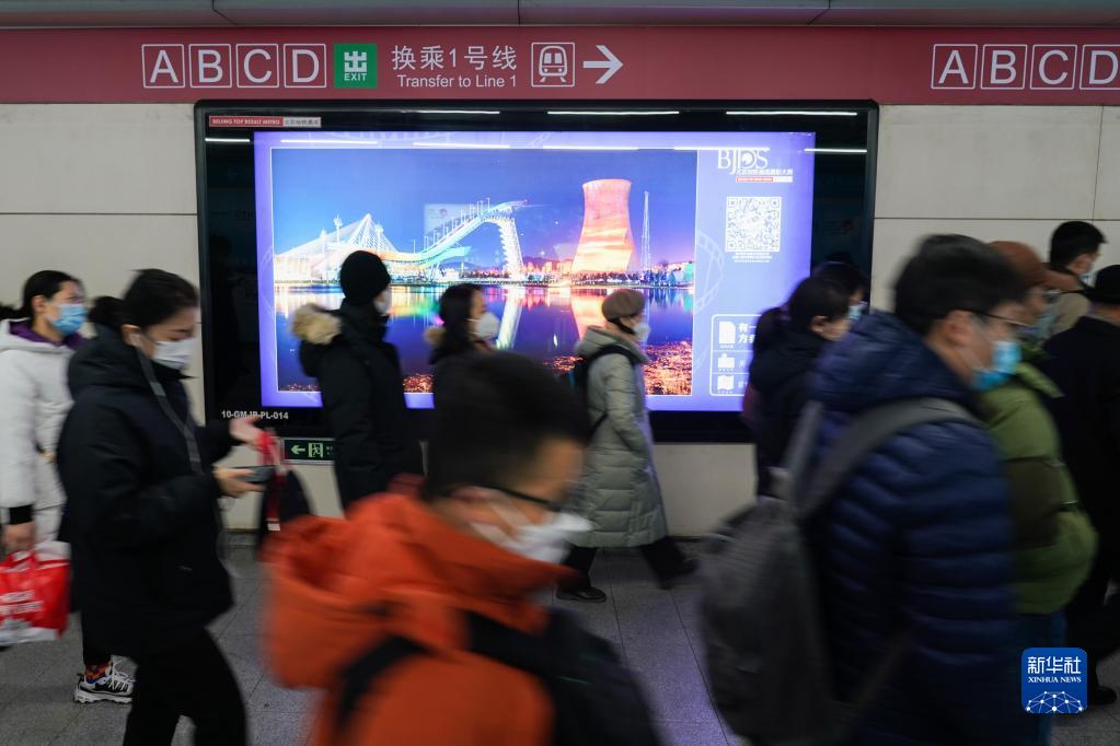 1月28日,在北京國(guó)貿(mào)地鐵站內(nèi),市民們穿過(guò)通道。新華社記者 彭子洋 攝