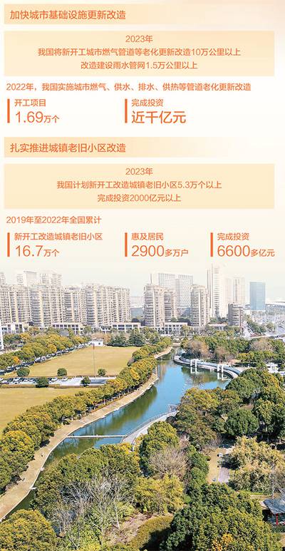 聚焦居民所思所想所盼所急,各地大力實(shí)施城市更新行動,讓人民群眾在城市生活得更方便、更舒心、更美好。2022年,我國實(shí)施城市燃?xì)狻⒐┧?、排水、供熱等管道老化更新改造,開工項(xiàng)目1.69萬個、完成投資近千億元。2019年至2022年,全國累計(jì)新開工改造城鎮(zhèn)老舊小區(qū)16.7萬個,惠及居民2900多萬戶,完成投資6600多億元。