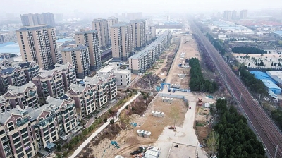 在開封市金明華府小區(qū)南側,延長線項目開始從橋梁向路基過渡,距離隴海鐵路僅數(shù)十米。