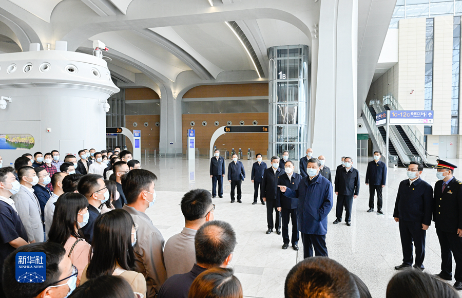 當(dāng)天上午,習(xí)近平乘高鐵前往雄安新區(qū),抵達(dá)后首先考察了雄安站的建設(shè)運(yùn)行情況。雄安站是雄安新區(qū)開工建設(shè)的第一個重大基礎(chǔ)設(shè)施項目,具有標(biāo)志性意義。習(xí)近平先后察看站臺、候車大廳、站外廣場,了解雄安站建設(shè)運(yùn)營和所在的昝崗片區(qū)規(guī)劃建設(shè)情況。習(xí)近平指出,雄安站是雄安新區(qū)的交匯車站,要進(jìn)一步完善聯(lián)通雄安站和雄安新區(qū)的交通“微細(xì)血管”,提升人流物流聚集和疏散的效率。要把昝崗片區(qū)建設(shè)成為高端高新產(chǎn)業(yè)集聚區(qū),讓各方來客一到雄安,就能感受到雄安新區(qū)撲面而來的現(xiàn)代化新氣象。