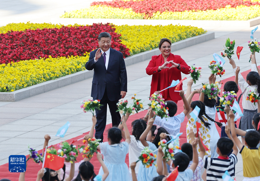 6月12日下午,國家主席習(xí)近平在北京人民大會堂同來華進行國事訪問的洪都拉斯總統(tǒng)卡斯特羅舉行會談。這是會談前,習(xí)近平在人民大會堂東門外廣場為卡斯特羅舉行歡迎儀式。新華社記者 黃敬文 攝