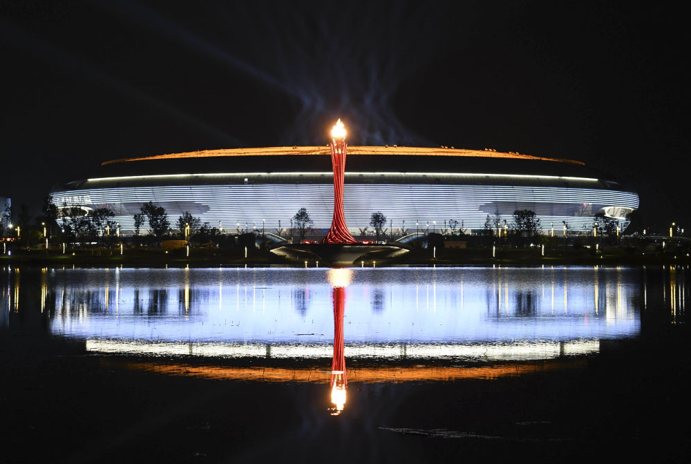 這是2023年7月28日拍攝的第31屆世界大學(xué)生夏季運(yùn)動(dòng)會(huì)主火炬。新華社記者 張端 攝