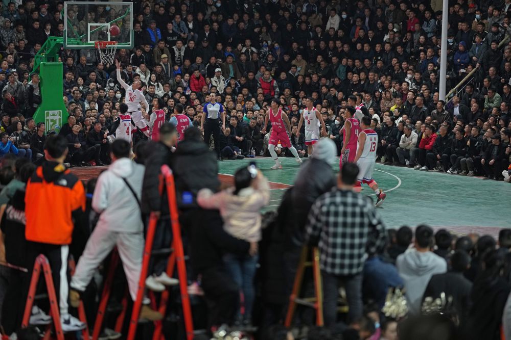 2023年3月25日,當(dāng)?shù)厝罕娪^看貴州省首屆“美麗鄉(xiāng)村”籃球聯(lián)賽總決賽。新華社記者 李尕 攝