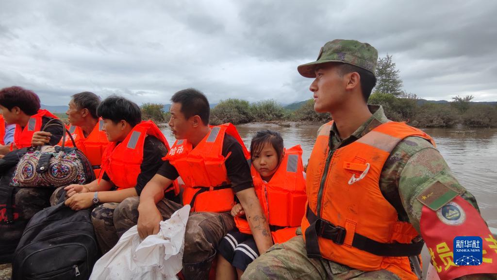 8月7日,陸軍第78集團(tuán)軍某旅組織官兵在黑龍江五常市沙河子鎮(zhèn)使用沖鋒舟轉(zhuǎn)移受困群眾。新華社發(fā) (王麒淞 攝)