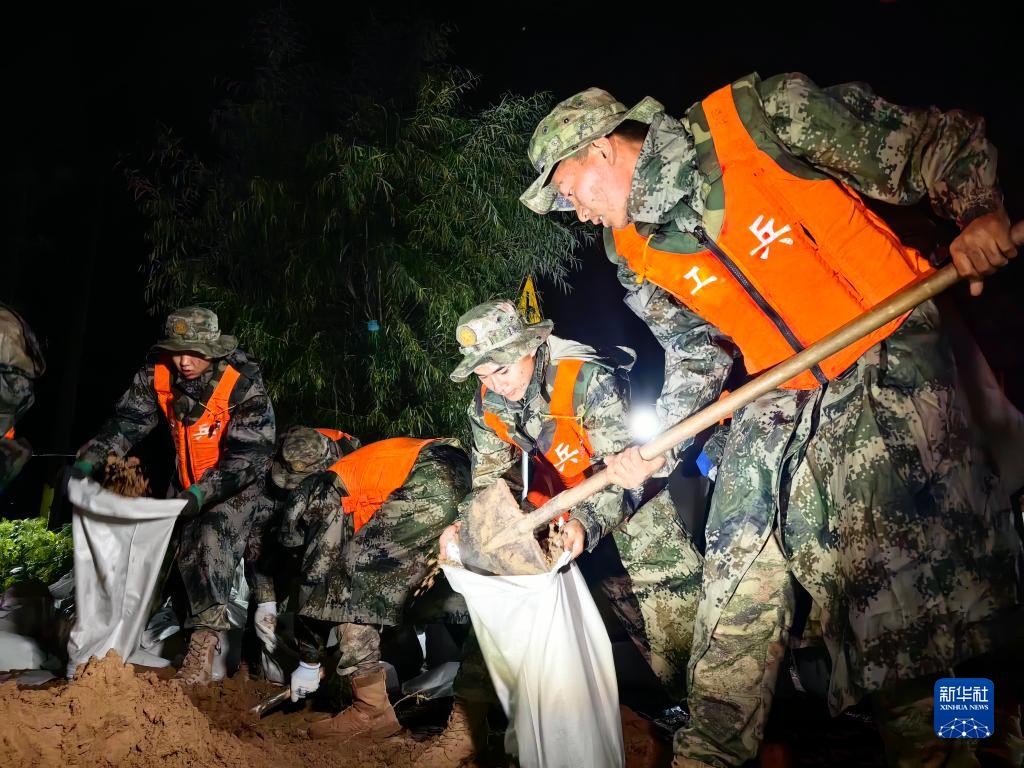 與此同時,幾十公里外的河北省高碑店市白溝河任務(wù)區(qū),火速抵達(dá)的中部戰(zhàn)區(qū)陸軍第82集團(tuán)軍“鐵軍旅”官兵,在暴雨泥濘中揮動鐵鍬、裝填麻袋、加固岸堤。