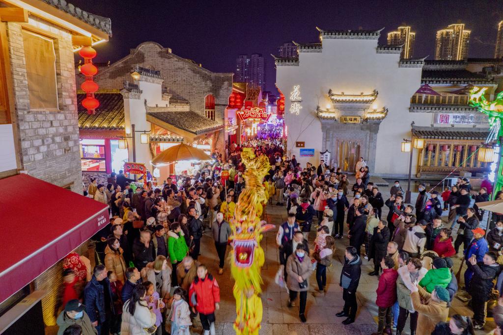 ??2月10日,舞龍巡游在安徽蕪湖古城花街上演。新華社發(fā)