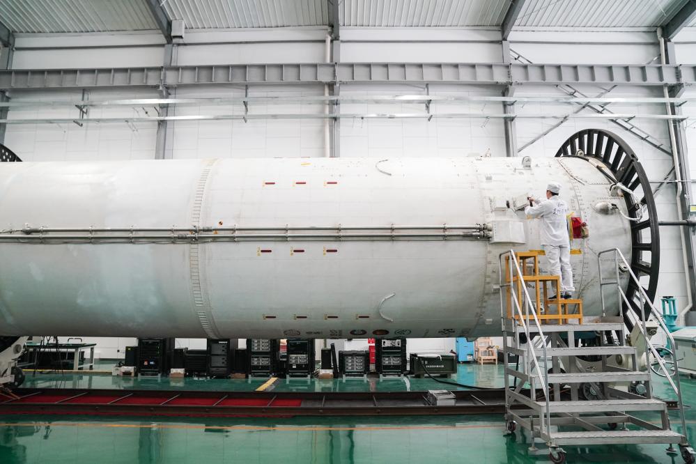 ??北京星際榮耀空間科技股份有限公司裝配測試人員在安裝液體姿軌控動力系統(tǒng)。