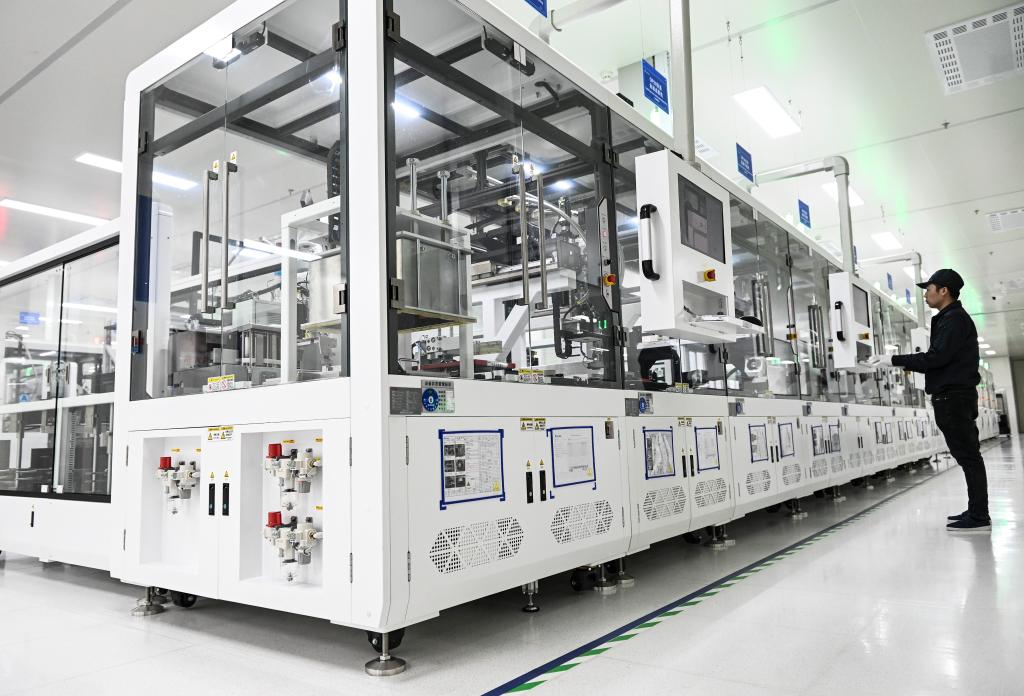 ??在哈電集團哈爾濱汽輪機廠有限責任公司的葉片加工智能化車間,工作人員對中小葉片數(shù)字化生產(chǎn)線上的運輸機器人進行調(diào)試。
