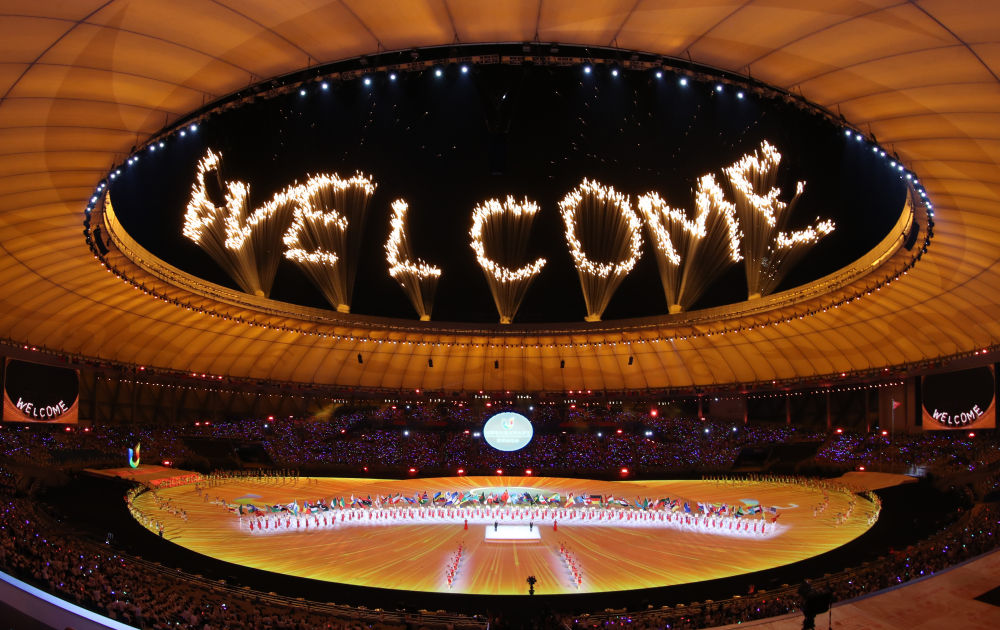 ??這是2023年7月28日拍攝的第31屆世界大學(xué)生夏季運(yùn)動(dòng)會(huì)開幕式焰火。新華社記者 江宏景 攝
