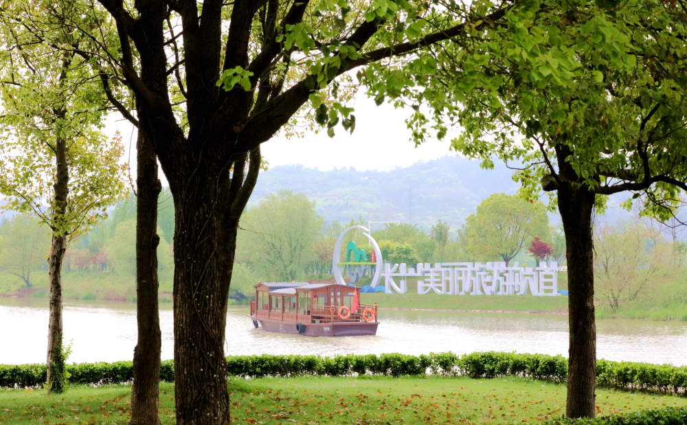??2024年4月10日,游船在浙江省湖州市長(zhǎng)興縣太湖圖影濕地的航道上航行。