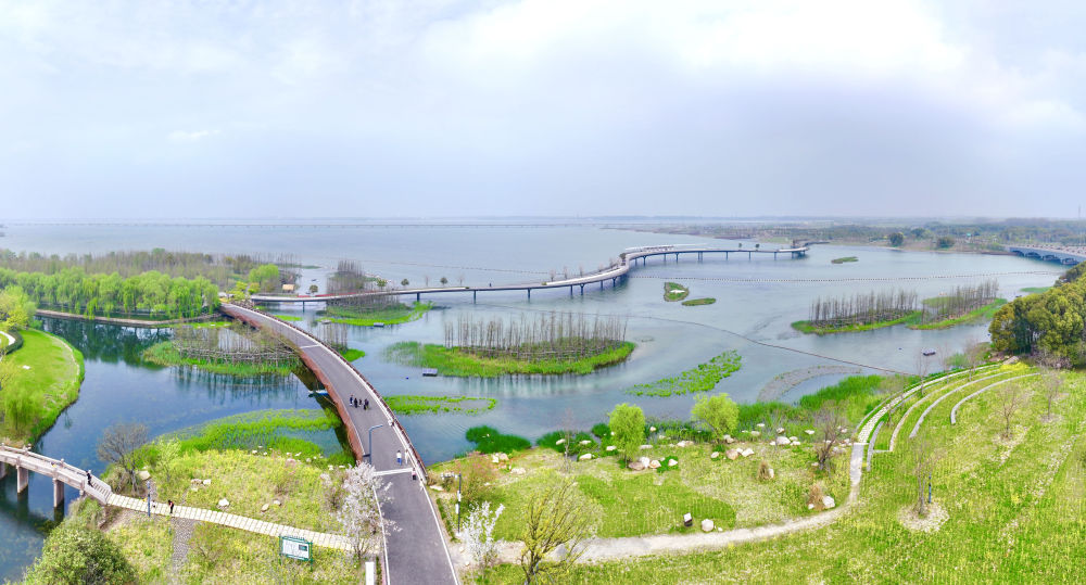 ??這是連接上海青浦和江蘇吳江兩地的元蕩慢行橋(2024年3月31日攝,無人機(jī)照片)。漫步橋上,大好風(fēng)光盡收眼底。同心結(jié)形狀的元蕩慢行橋,是長(zhǎng)三角一體化發(fā)展的生動(dòng)注腳之一。