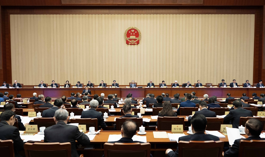 ??12月22日上午,十四屆全國人大常委會第十三次會議在北京人民大會堂舉行第二次全體會議。趙樂際委員長出席。新華社記者 李濤 攝