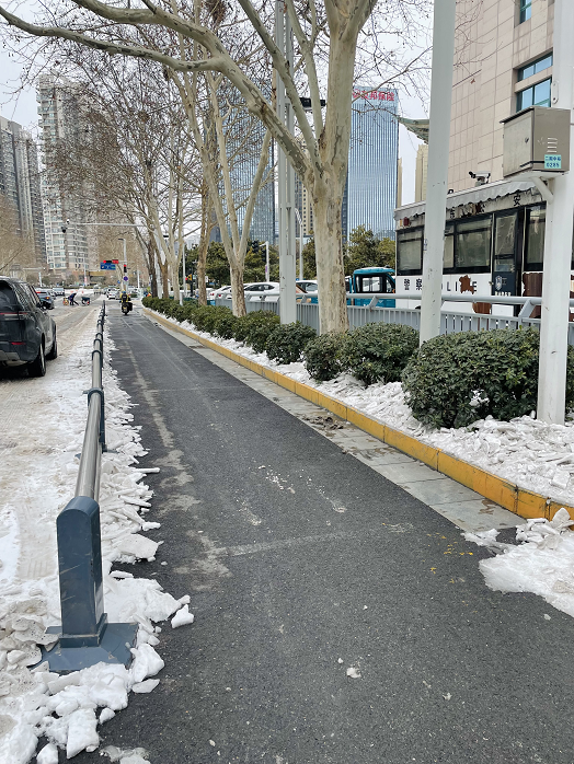 大家用鐵鍬邊敲邊鏟,一點(diǎn)點(diǎn)“攻克”堅(jiān)硬厚實(shí)的冰層,經(jīng)過共同努力,非機(jī)動(dòng)車道的冰層積雪徹底清除,最終在凍雪中鏟出一條“安心路”,有效保障了附近來往群眾的安全通行。